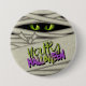 A creepy wrapped mummy with glowing green eyes and classic gauze bandages decorates this round pinback button along with optional 'Happy Halloween' typography in green and purple. Also available in an orange/purple colour palette. Search ID685 to see coordinating party supplies and accessories with this great mummy pattern.