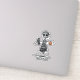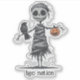 This is a cute Halloween sticker that features a mummy scarecrow with a crow and a pumpkin on its arms. You can customize the default text "boo nation".