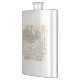 The product is a good size and came exactly as it was pictured. The lid is not attached to the flask, which could be dangerous on drunken nights... The print came out surprisingly well and looks very sharp. Would definitely recommend.