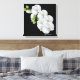 L'art de la toile enveloppée est représenté avec une empreinte graphique de jolies orchidées blanches sur une couleur arrière - plan noire. Customisez cet objet ou achetez tel quel. Image stock
