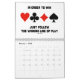 Présentez votre pont tordu/attitude en double de pont tout au long de 2014 avec ce calendrier de pont comportant 13 énonciations de pont -- un pour chaque mois et une conception de bonification sur le dos du calendrier qui exprime "ce que vous entendez au Tableau de pont".