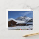 Chalets in the car free village of Mürren, Switzerland with the majestic alps in the background Postcard. Perfect postcard to send greetings to your loved ones from beautiful Mürren, Switzerland. Or, bring back special holiday memories.