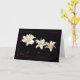 . Multiple lilies and vases on a black background are used to create this striking still-life card.