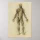 Vintage 1848 anatomical illustration of the human body. Showing anterior view of the superficial and deep muscles.