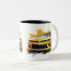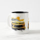 This ceramic coffee mug is shown in a muscle car art print.