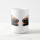This ceramic coffee mug is shown in a muscle car art print.