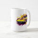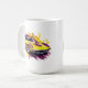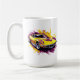 This ceramic coffee mug is shown in a muscle car art print.