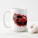 This ceramic coffee mug is shown in a muscle car art print.