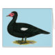 Black Muscovy ducks usually have varying amounts of white on their wings. The bare facial skin is often red and black.