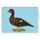 The chocolate colour of Muscovies varies from light to dark, often with a white wing patch, as seen in this duck.