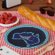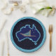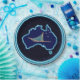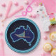 A dog sled with a teal sled bag and the Southern Cross superimposed on a blue map of Australia. All on a starry background. You may customize by adding a bit of text on the sled bag.