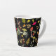 Consider this country chic mushroom latte mug to have your morning drink. It has a black background with pink, orange and green mushrooms. Interspersed are sprigs of foliage in greens and grey. Bright green beetles and orange snails give this mug a whimsical look. It can be personalized with a name and initial in your choice of font.
