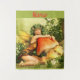 Blue-eyed blonde fairy hugging a big amanita mushroom to customize with your own greeting, name, message, etc