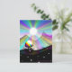 A beautiful rainbow-coloured mushroom against a mountain background.