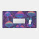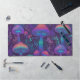 A vibrant and intricate design features glowing, mystical fungi rendered in an iridescent neon palette of violet, teal, magenta, and bright blue. The psychedelic mushrooms are surrounded by delicate, ethereal flowers and foliage, creating a truly whimsical and enchanting forest scene.