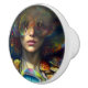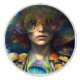 A colourful trippy retro mushroom themed design with a beautiful woman
