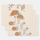 Mushrooms And Flowers Earth Tones Beige Retro 70s Wrapping Paper Sheet
