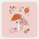Mushrooms And Flowers Peach Art Retro 70s Square Sticker