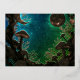 Mushrooms and Moons Teal Blue Fairycore Foil Holiday Postcard