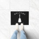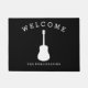 Music themed black doormat with white acoustic guitar.