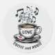 Start your day with the perfect harmony of coffee and music. This sticker features a cozy cup of coffee with whimsical, musical steam notes rising into the air, paired with a cute biscuit adorned with a heart. The phrase "Love Coffee and Music" ties it all together, making it a must-have for coffee lovers and music enthusiasts alike. Perfect for decorating laptops, water bottles, notebooks, and more. Comes in sets of 6 or 20.