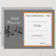 A stylish modern music certificate award with a treble staff image perfect for encouraging a young musician. You can write in your own details. A great resource for any type of music teacher.