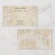 An elegant business card that features a background that looks like old paper. Music notes are on the right and left of this card. Your customized text goes in the centre.