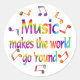 Music lovers will enjoy this colourful design with the music notes and the rainbow coloured words Music Makes the World Go 'Round.