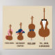 Funny violin, viola, cello and string bass instruments with music humour quotes.