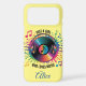 A Yellow Case Designed With Colorful Headphones With Vinyl Record Typography Reads Just A Girl Who Loves Music You Can Personalize On An iPhone 17 Pro Max Case