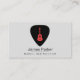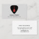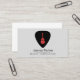 Clean minimalist guitar pick logo on black and white card with elegant presence of guitar logo for music instructors, musicians, acoustic entertainment professionals.