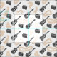 Customizable fabric with vintage illustrations of guitar and radio + pale pink "spaghetti" design. Don't forget the whole collection of fabric with revisited design of 50s style.