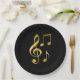 Music icons, gold on black, paper plate