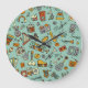Music instruments, vintage sketch pattern. large clock
