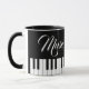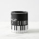 This design is for music lovers young and old. This mug features a simple and elegant design with a piano keyboard. Above the keyboard the text reads "Music Is A Thing Of Beauty." The colour of the handle and rim can be changed, and you can customize the background colour.