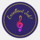 Music Lessons Treble Clef Reward Navy Blue Classic Round Sticker