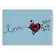 A treble and a bass clef shaped as a heart. With a wire spelling love with notes in the other side.
