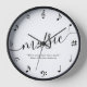 The size of the clock is dramatic and the abstract alcohol ink design is soothing and intricate at the same time. I chose the black frame that adds pop to the blue and gold design. The gold printing would be better in a slightly darker or larger font. I love it and I’m looking for just the right place in ny new apartment. I would recommend this clock for a personal gift or a present. I feel that the quality is excellent for the money! I’m a bit of a clock nut so I’m pretty particular about my purchases. The clock is larger in diameter than many if the clocks I have, so it stands out very well. I think a slightly darker printing color and a moderately larger size would best suit a professional decor or add more impact in a work place item.