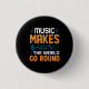 Music Makes The World Go Round in orange and blue on black. Makes a great gift for singers and musicians or anyone else who just truly loves music!