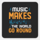 Music Makes The World Go Round in orange and blue on black. Makes a great gift for singers and musicians or anyone else who just truly loves music!