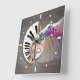 A Musical and Theatrical MUSIC MASK WALL CLOCK with a swirling keyboard, musical notes and a rainbow of music stemming from a theatrical mask.