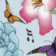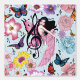 A cute little fairy all in pink with music notes, flowers and butterflies in a backdrop of blue