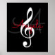 Musical note (treble clef) with a script monogram on a black background, for a cool music inspired decor