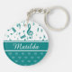 A sweet and chic musical design featuring a pattern of teal green music notes on white with an accent of light teal love hearts on green at the bottom of the design. Customizable text for the name in a lovely cursive script font.