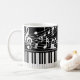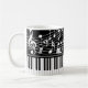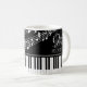 Modern, stylish and personalized mug featuring piano keys or keyboard and staff and music notes with a monogram and/or name or your custom text in an editable font style and your choice of background, notes graphic and text colours (shown in black and white). Ideal for music teachers, musicians, music professionals or music lovers. ASSISTANCE: For help with design modification or personalization, colour change, resizing, transferring the design to another product or if you would like coordinating items, contact the designer BEFORE ORDERING via the Zazzle Chat MESSAGE tab or email at makeitaboutyoustore@gmail.com.