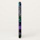 Music Notes Personalized iPhone X Case. A black phone case with colourful blue, green, lavender, pink and gold musical notes with a purple ribbon. Fill in your name and initial at the prompt to personalize and customize any way you like. A great gift for your favourite musician or music lover. #music