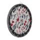 This dartboard is perfect for music lovers and game enthusiasts alike. Featuring a beautiful pattern of musical notes, sheet music symbols, and hearts in black and red, this dart board is sure to provide hours of entertainment and relaxation. With its unique design, it makes a great gift for friends and family who appreciate music and darts.