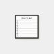 This small square 3x3 sticky notepad can be personalized with a name or message. It says "Notes to Self", and is music themed with musical notes on the lines. It can make a nice stocking stuffer for a musician or music lover. There is a simple clean black border.