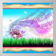 digital art with grass sky butterfly and music notes floating.