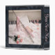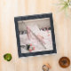 White piano serves as a backdrop for a silver flute, sheet music, pink ballet shoes, pink roses and petals. Set in a matte silver frame on a black satin background. Stylized digital design for you to enjoy.